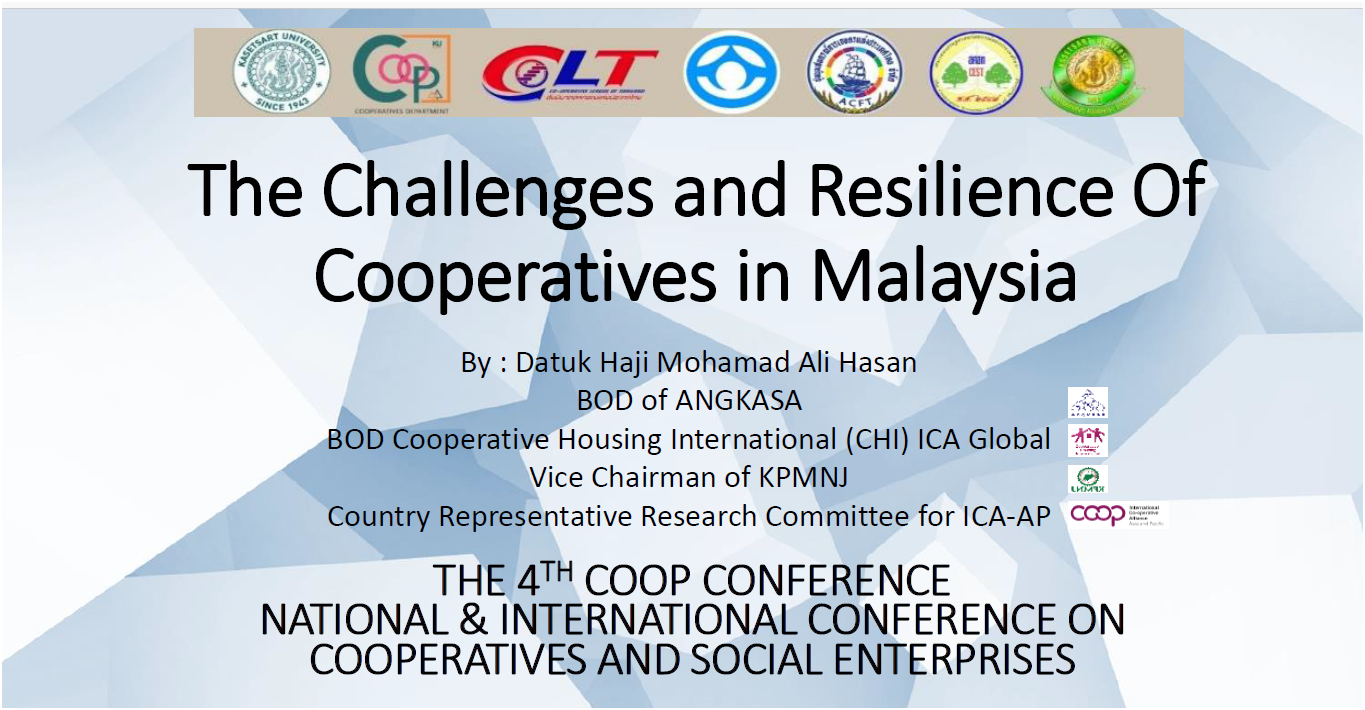 CHI board member, Datuk Haji Mohamad Ali Hasan, who also serves on the board of ANGKASA presented “The Challenges and Resilience of Cooperatives in Malaysia” at the 4th Coop Conference National & International Conference on Cooperatives and Social Enterprises.